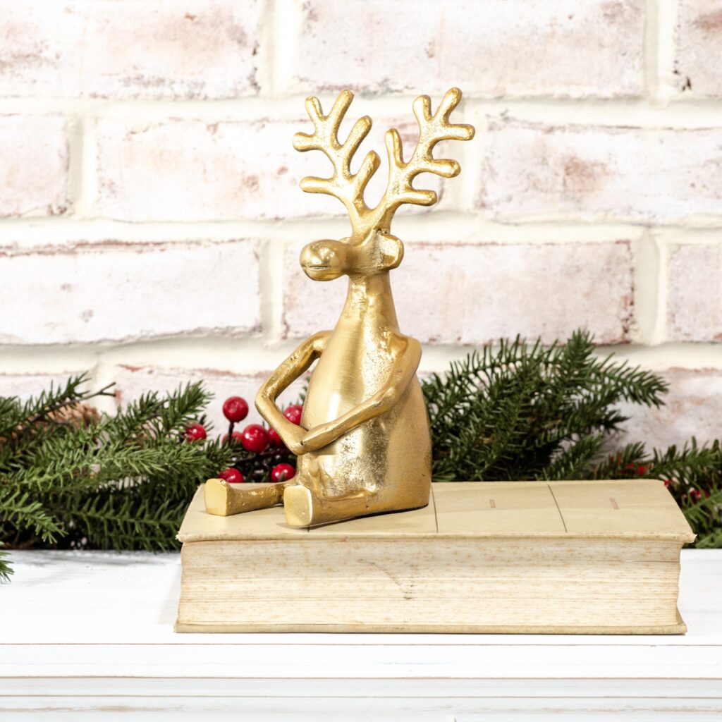 PDDE2405 Gold Sitting Holding Hands Reindeer