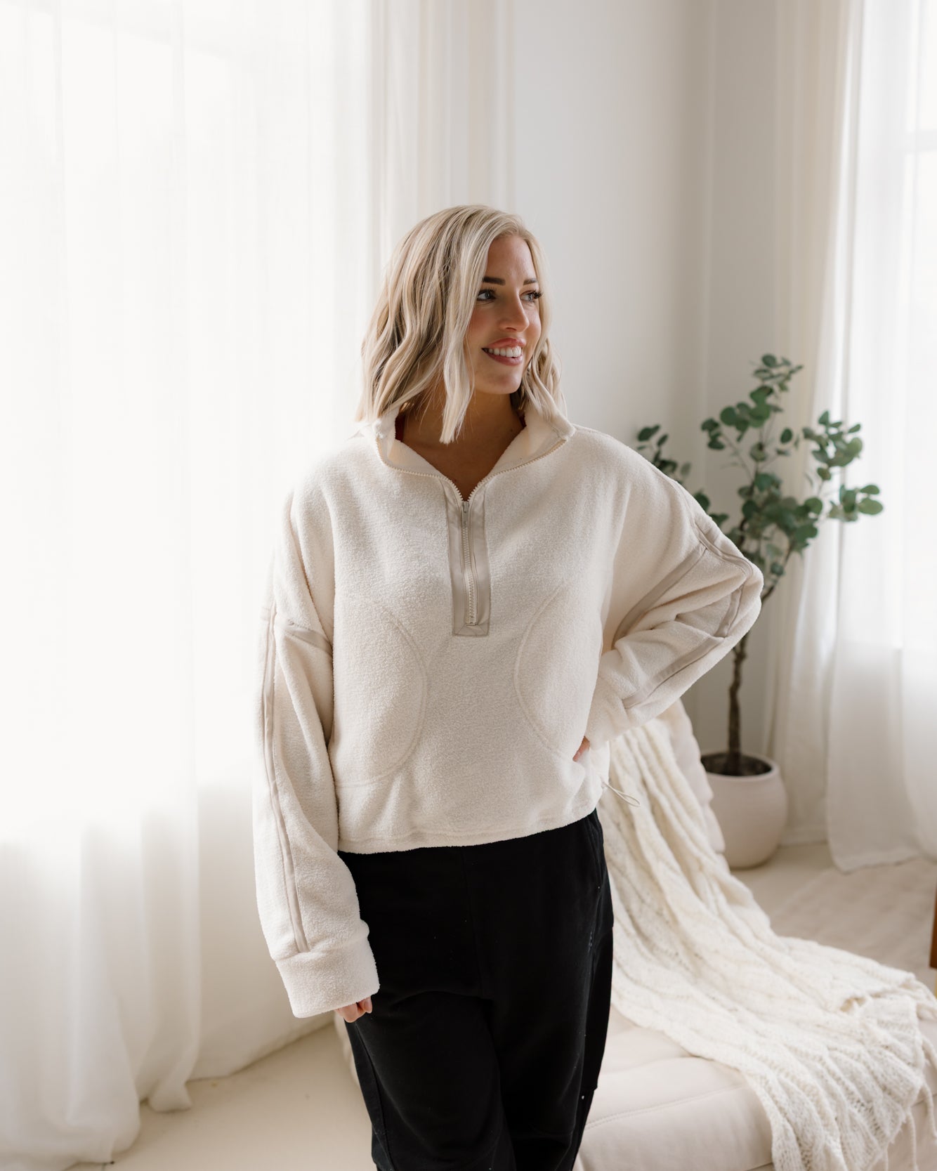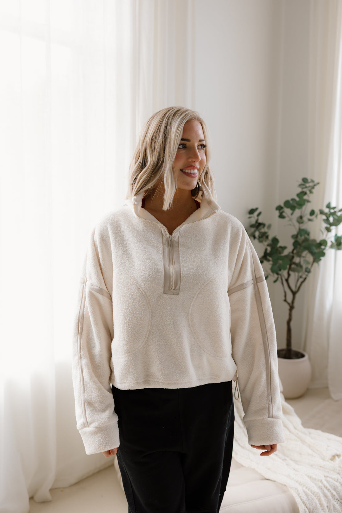 Ann Fleece Half Zip Jacket | Ivory